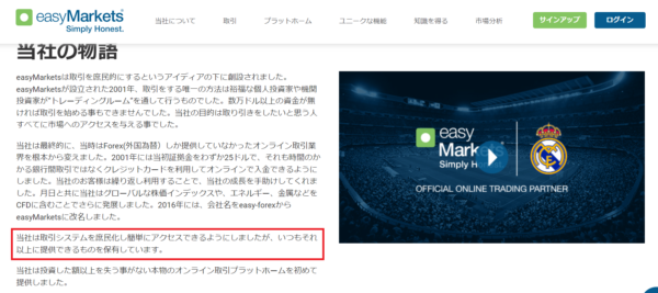 たとえば、easyMarketsという海外FX業者のサイトには「当社は取引システムを庶民化し簡単にアクセスできるようにしましたが~」という表現が記載されています。日本人であれば、「システムを庶民化する」とは絶対に言わないでしょう。たとえば、「システムを初心者にもわかりやすく~」みたいな表現を使うはずです。このような表現の違和感が、結果として公式サイトの文章をわかりにくくし、口座開設しても大丈夫だろうか?という疑念を抱かせます。そのため海外FX選定基準について日本語対応を優先するのであれば、公式サイトのページを数ページ閲覧し、日本語としてしっかり意味が取れる海外FX業者かどうかを選定基準にすることもありです。